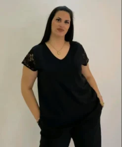 Plus size Μπλούζα βαμβακολύκρα με δαντέλα V31551