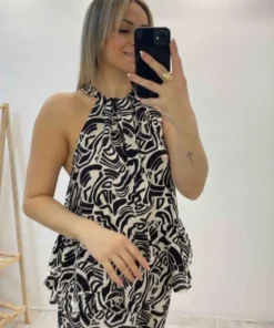 Σετ Μπλούζα και Παντελόνα τύπου λινό V1000